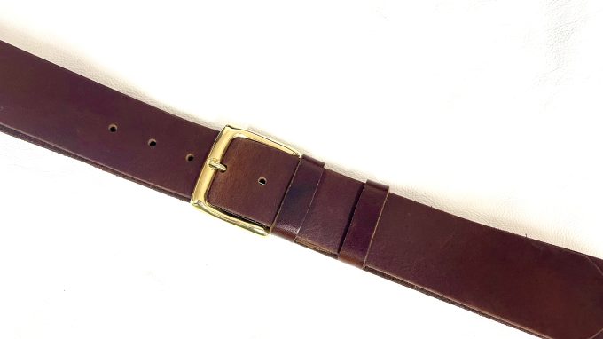 חגורת עור חומה קלאסית לאישה בעלת אבזם מוזהב מעוצבת בעבודת יד