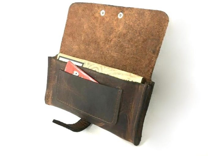 נרתיק עור חום לטבק מעוצב לגבר בעבודת יד