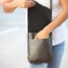 התיק כולל רצועה ארוכה מעוטרת לולאת מתכת עדינה, הוא בעל תא קידמי שטוח וארוך (לפלאפון, מפתחות) בנוסף לתא גדול פתוח. עשוי כולו מעור.