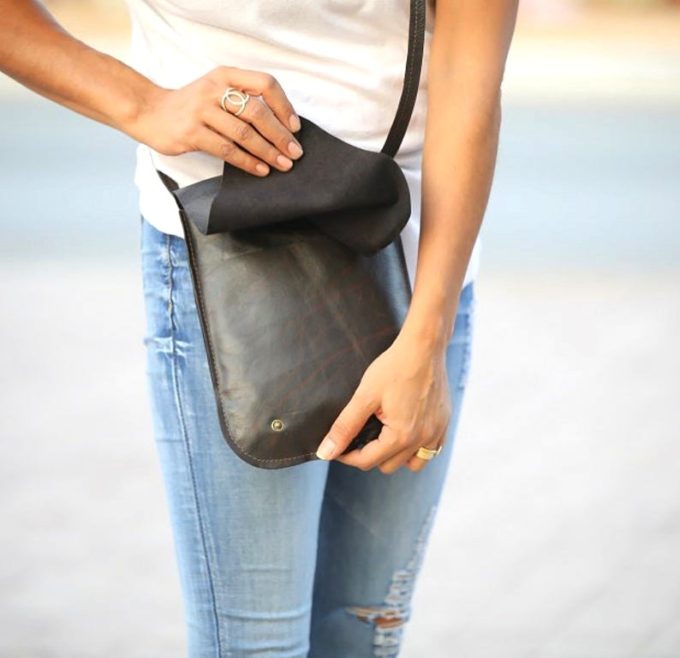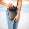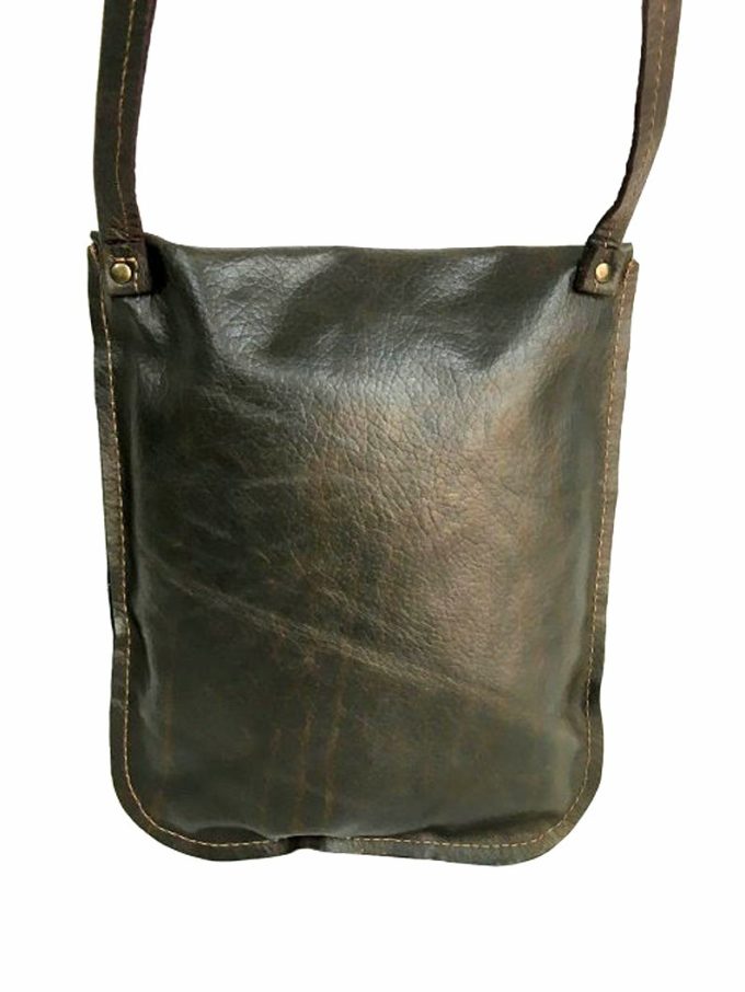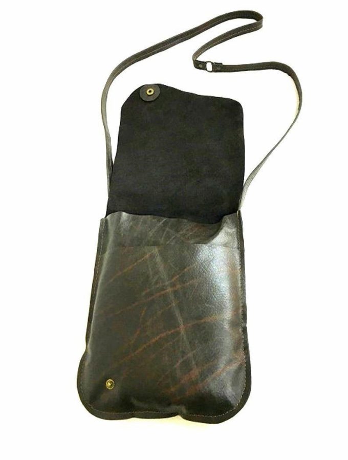 תיק עור קטן לאישה בגוון חום כהה מעוצב בעבודת יד