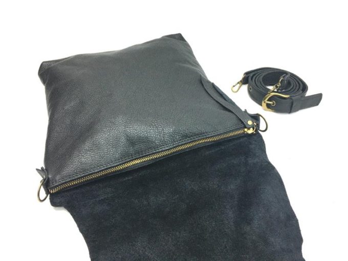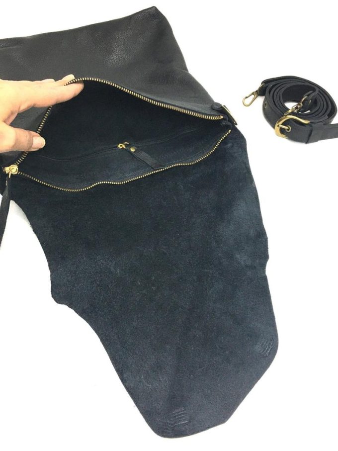 תיק עור שחור לאישה מעוצב בעבודת יד